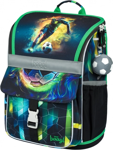 Der Ranzen BAAGL Zippy Fußballspieler verbindet modernes Design mit Fokus auf gesundes Tragen. Dank des ERGO ADJUSTABLE SYSTEM stellen Sie die optimale Position der Riemen einfach nach der Größe des Kindes ein. Die leichte Konstruktion hält die stabile Form und das wasserabweisende Material schützt den Inhalt bei jedem Wetter.