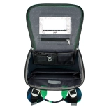Das neue aufklappbare Öffnungssystem ermöglicht Kindern, bequem direkt aus der Bank nach den Utensilien zu greifen. Innen gibt es einen Organizer mit Gummiband, eine transparente Tasche für den Stundenplan und eine isolierte Fronttasche.
