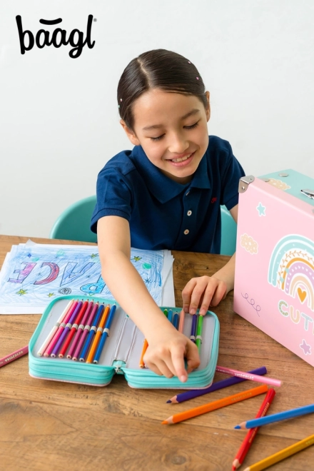 BAAGL Schulmäppchen dreistöckig Regenbogen rosa