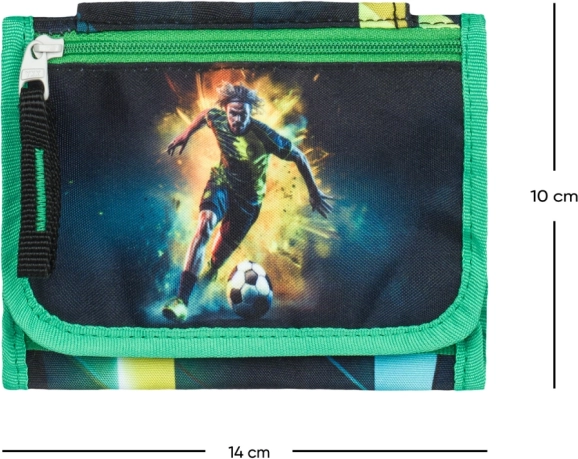 Diese stylische BAAGL-Geldbörse mit Fußballmotiv ist für Kinder und Teenager konzipiert, die ihre Kleinigkeiten übersichtlich und sicher verstauen möchten. Die robuste Ausführung hält dem Schullalltag und sportlichen Aktivitäten stand, während der Klettverschluss ein schnelles, einfaches Öffnen und Schließen garantiert.