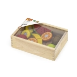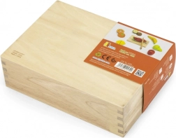 Die praktische Holzbox mit transparentem Deckel dient sowohl als Aufbewahrungsbox als auch als Präsentationsvitrine, sodass alle Teile immer beisammen sind. Das Set eignet sich hervorragend für das selbstständige Spiel oder gemeinsames „Kochen“ mit den Eltern.