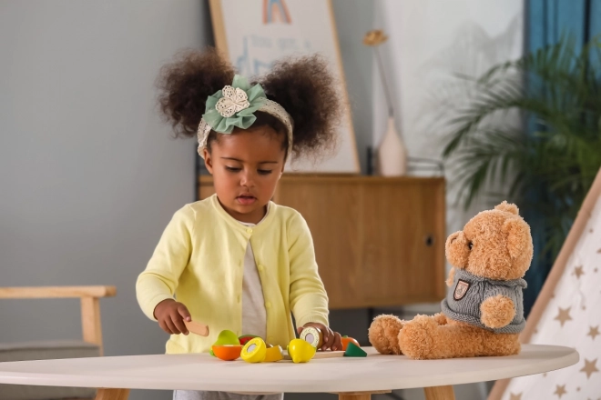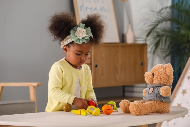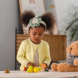 Dank versteckter Verbindungen lässt sich das Obst immer wieder teilen und zusammensetzen – Kinder trainieren Präzision und Koordination auf sichere Weise.