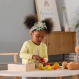 Das komplette Set mit Brett und Messer vermittelt richtige Bewegungsabläufe in der Küche und fördert die Fantasie beim Kochspiel.
