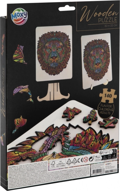 Holen Sie sich das einzigartige MOXY-Puzzle mit Löwenumriss nach Hause, das aus 140 Teilen besteht. Das Puzzle ist so gestaltet, dass es nicht nur Spaß macht, sondern auch einen pädagogischen Nutzen bietet.