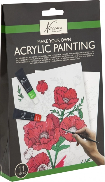 Machen Sie den ersten Schritt zum kreativen Prozess mit unserem Acrylmalset. Es enthält alles Notwendige, einschließlich hochwertiger Acrylfarben, Pinsel und vorgezeichneter Leinwand, die das Malen erleichtert.