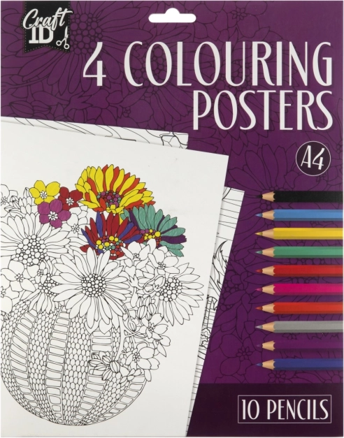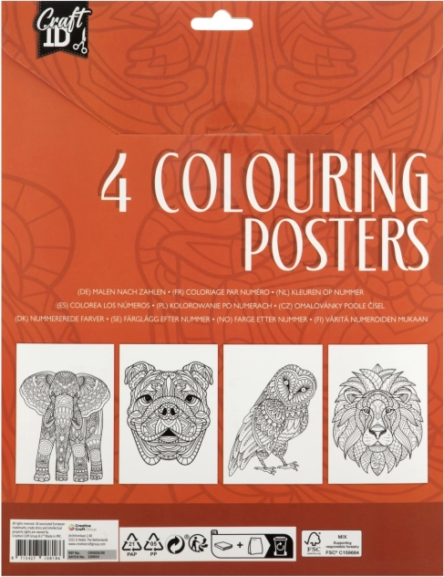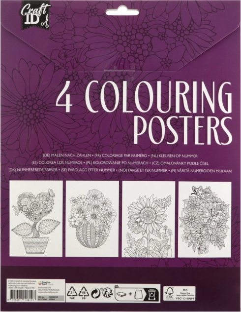 Entdecken Sie die Welt der Kreativität mit unseren Ausmalplakaten der Marke Craft ID. Jedes Paket enthält vier Plakate, die Sie in eine künstlerische Welt voller Fantasie ziehen. Die Plakate enthalten detaillierte Illustrationen von floralen Motiven bis hin zu Tiergesichtern, die auf ihre Farben warten.