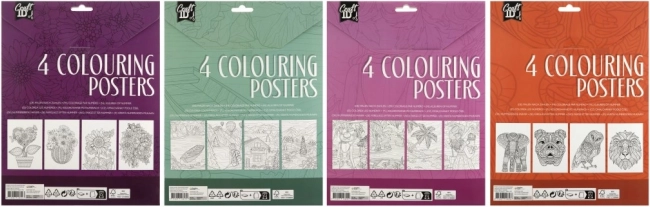 Jedes Paket enthält vier unterschiedliche Ausmalplakate für ein einzigartiges künstlerisches Erlebnis.