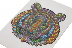 Das Puzzle kann auf der Platte oder ohne sie für größere Herausforderungen zusammengesetzt werden.