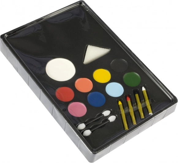 Die Farben lassen sich leicht mit den beigefügten Applikatoren und dem Schwamm auftragen. Nach Ende der Veranstaltung können die Farben einfach mit Wasser oder einem Abschminkpad abgewischt werden.