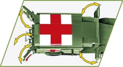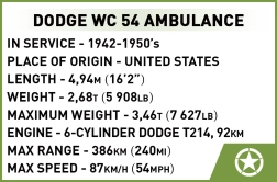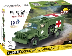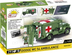 Bauen Sie sich ein historisches Modell eines Militärkrankenwagens des Dodge WC 54 aus dem 2. Weltkrieg mit diesem Bausatz von COBI, der 293 Teile und eine Soldatenfigur enthält.