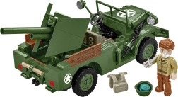 Das Modell besticht durch präzise Detailverarbeitung, einschließlich eines speziell entworfenen Teils, das das charakteristische Gitter der GMC-Fahrzeuge originalgetreu nachahmt. Das Modell bietet Platz für einen Fahrer und einen Passagier, mit einer Baustein-Kanone auf der Ladefläche. Das Set enthält eine einzigartige Figur eines Soldaten der US-Armee, die zur Authentizität und Spielfreude des Modells beiträgt, ergänzt durch kleine Zubehörteile wie Ausrüstung und Gewehr.