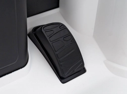 Der Sitz ist mit einem Sicherheitsgurt und schwarzem Ökoleder ausgestattet, was Komfort und Sicherheit bei jeder Fahrt gewährleistet.