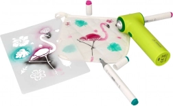 Dieses AirBrush Kreativ-Set ist das perfekte Werkzeug für alle, die ihre Kreativität entfalten und einzigartige Designs auf Textilien erstellen möchten. Im Set finden Sie alles Nötige für den Anfang – vom Sprühwerkzeug über Schablonen bis hin zu farbigen Markern.