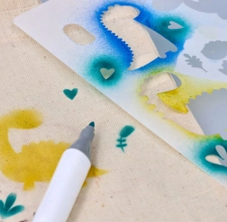 Das Set enthält Schablonen mit Motiven von Dinosauriern und Astronauten, die endlose Möglichkeiten für Ihre Kunstwerke bieten.