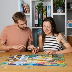Die außergewöhnliche Dicke des Kartons stellt sicher, dass zusammengesetzte Teile auch bei Handhabung zusammenhalten. Das Zusammensetzen wird durch die beigelegte Vorlage erleichtert. Die Puzzles sind so verpackt, dass sie umweltschonend sind – die Box ist recycelbar und nur mit Aufklebern versiegelt.<4e><4d>