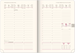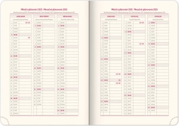 Wöchentlicher Planer Notique Twill 2025 in eleganter blau-silberner Farbe ist das ideale Hilfsmittel zur Organisation Ihrer Tage. Er bietet eine übersichtliche Wochenansicht mit einem tschechisch-slowakischen Kalender und mehrsprachigen Beschriftungen.