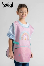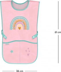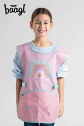 Diese rosa Kinder-Schürze mit fröhlichem Regenbogenmotiv ist ideal für die Schule, AGs und zu Hause. Das leichte und robuste Material ist pflegeleicht und lässt sich einfach mit einem feuchten Tuch abwischen. Dank des verstellbaren seitlichen Verschlusses sitzt sie gut und schränkt die Bewegung nicht ein.