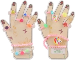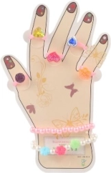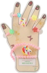 Dieses bezaubernde Set bringt Kindern Freude an Farben und Fantasie. Kunststoffringe mit Herzchen-, Blümchen- oder glitzernden Steinchenmotiven und elastische Armbänder lassen sich leicht anlegen und angenehm tragen. Ideal für Verkleidungen, Spielecken oder als kleines Geschenk.