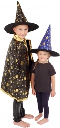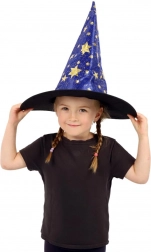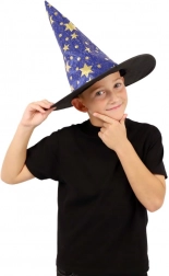 Dieser blau-goldene Zaubererhut mit Sternenmuster verwandelt jedes Kind in einen kleinen Magier. Dank des leichten Stoffes ist er angenehm zu tragen, behält seine Form und ergänzt perfekt ein Kostüm für Karneval, Maskenball oder Theateraufführungen.