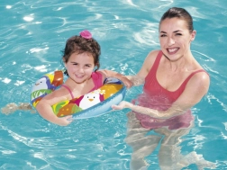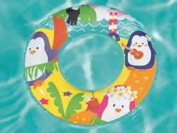 Farbenfroher aufblasbarer Ring BESTWAY mit einem Durchmesser von 51 cm, ideal für Kinder von 3 bis 6 Jahren. Strapazierfähiges PVC-Material, verspielte Motive (Pinguine, Meeresfeen, tropische Vögel) und ein rückschlagfreies Sicherheitsventil für unbeschwerte Unterhaltung am Pool und am Meer. Leicht und kompakt sowie einfach aufzublasen – der ideale Begleiter für den Sommerurlaub.