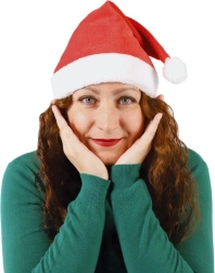 Kräftiges Rot, ein flauschiger weißer Saum und ein Bommel schaffen den ikonischen Look, der echte Weihnachtsstimmung aufkommen lässt.