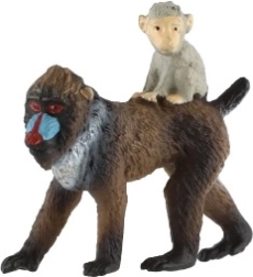 Diese hochwertig gestaltete Mandrill-Figur zeigt ein Weibchen mit Jungtier auf dem Rücken, wie man es auch in freier Wildbahn beobachten kann. Die realistische Farbgebung des Gesichts und die Felltexturen unterstreichen das authentische Aussehen, das Kinder, Pädagoginnen und Pädagogen sowie Sammler begeistert.