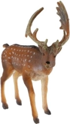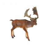 Die Figur zeigt den europäischen Damhirsch mit seinem gefleckten Fell und dem typischen schaufelförmigen Geweih – ideal für Unterricht und Spiel.