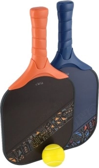 Dieses Set umfasst 2 leichte Kunststoffschläger und 1 Ball für aktive Unterhaltung im Freien. Die Schläger sind für einfaches Halten und gute Ballkontrolle ausgelegt, daher geeignet für Kinder und Erwachsene. Perfekt für Familienmomente, kleine Turniere mit Freunden oder lockeres Spiel am Strand oder im Garten.
