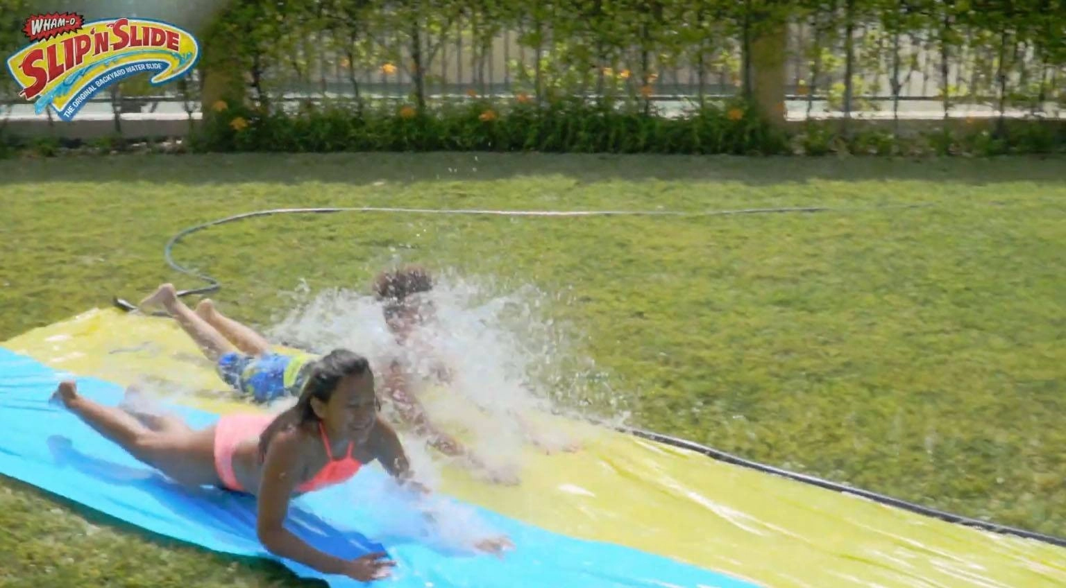 Anlaufen, springen und auf einer erfrischenden Welle voller Spaß dahingleiten! Die doppelte Wham‑O‑Rutschbahn ermöglicht Kindern, Seite an Seite zu rutschen, während integrierte Sprinkler die Oberfläche perfekt rutschig und angenehm kühl halten. Dank hochwertiger Materialien ist die Bahn für tägliche Sommerspiele gerüstet.
