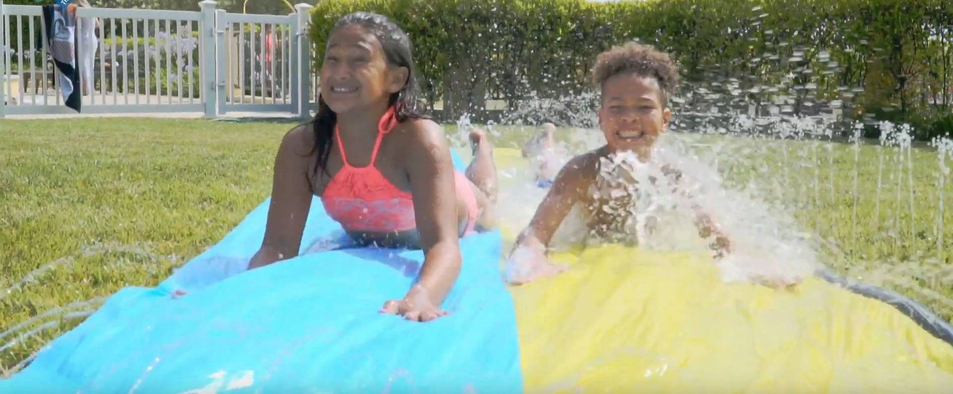 Doppelte Wasser­rutschbahn für den Garten