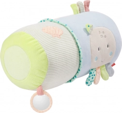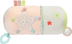Das eingebaute Rasselspielzeug im Inneren der Rolle zieht die Aufmerksamkeit des Kindes mit erzeugten Geräuschen an und hält sie aufrecht.