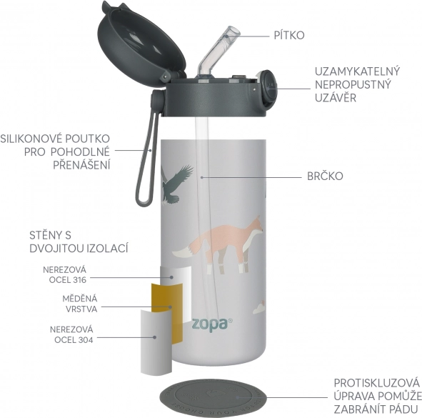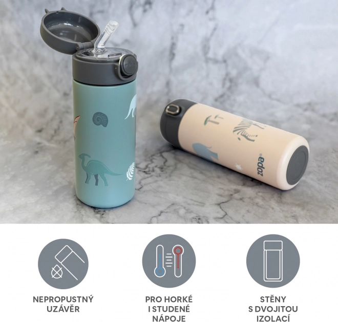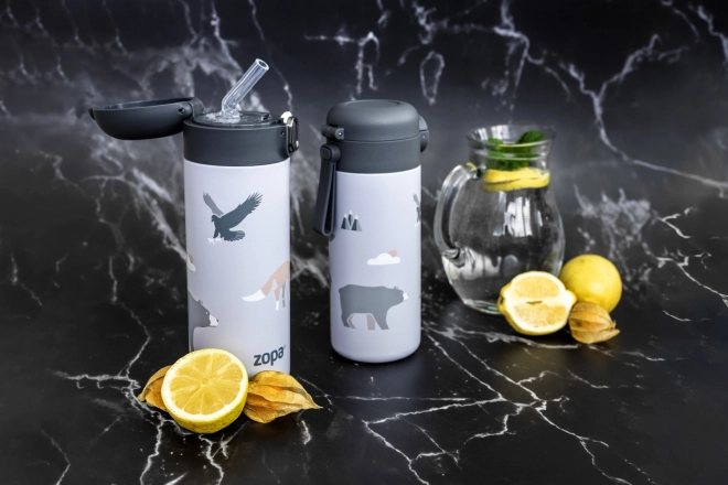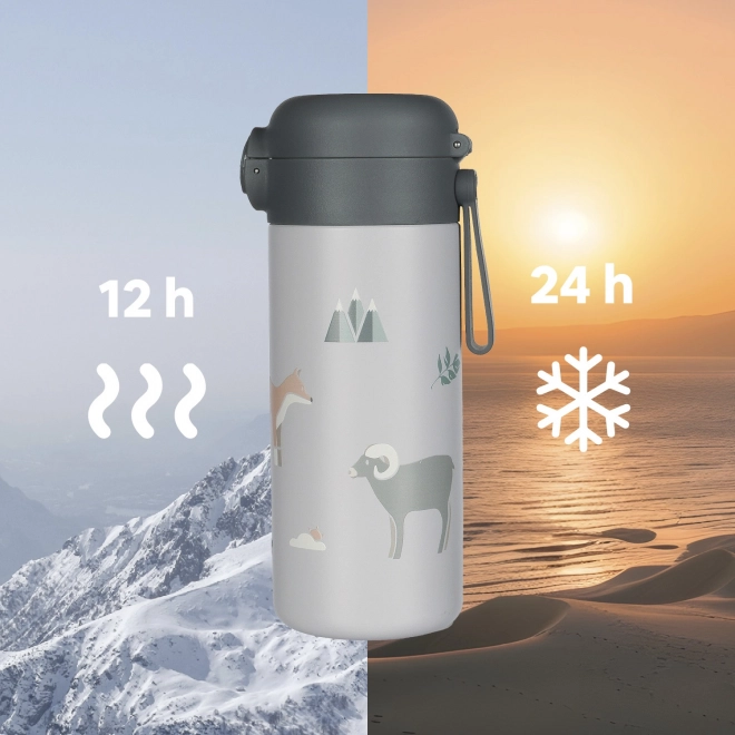 Thermoflasche für Getränke mit Strohhalm und Silikonhalter 350 ml, Safari