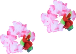 Dieses rosa Set im Hawaii-Stil ist ideal für Mottopartys, Karnevale und sommerliche Feiern. Stoffblüten in Rosatönen mit roten und grünen Akzenten wirken frisch und fotogen – so kommen Sie auf jedem Foto zur Geltung.