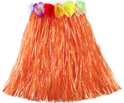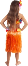 Der leuchtend orange Rock mit Blumenbesatz schafft im Handumdrehen tropisches Flair auf jeder Party und bei jedem Auftritt. Das Bild zeigt ein mögliches Styling – der Lieferumfang enthält nur den Rock.