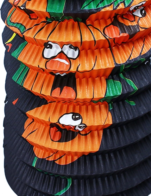 Schafft die richtige Halloween-Stimmung mit einem charmanten Lampion mit fröhlichen Kürbissen. Dank der ovalen Form und der Ausführung aus Papier wirkt er leicht und dekorativ, während der praktische Halter für ein Teelicht im unteren Teil für einen Effekt aus Licht und Schatten sorgt.