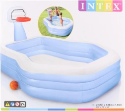 Das Spielcenter mit integriertem Basketballkorb und Ball bietet eine großartige Kombination aus Wasserspaß und Bewegung. Die großzügigen Maße von 257 × 188 × 130 cm und ein Volumen von 682 l (bei einer Wasserhöhe von 32 cm) sorgen für ausreichend Platz für Kinder ab 3 Jahren.