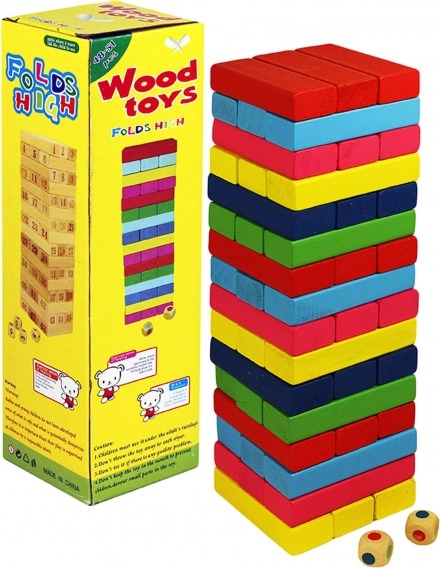 • Zum Set gehören auch zwei Würfel, die die Farbe des zu ziehenden Blocks bestimmen und die Spielvariabilität erhöhen.
