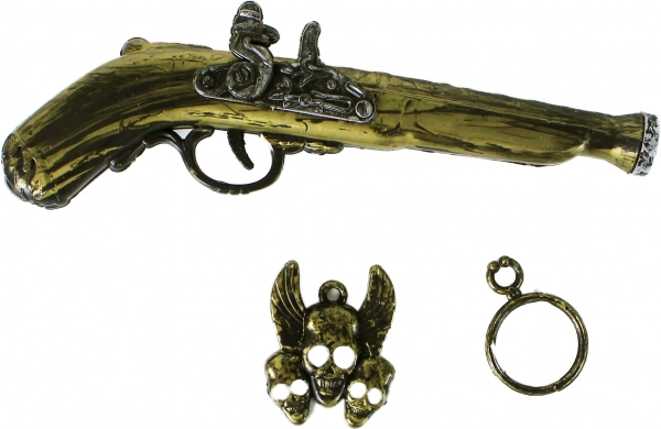 Detailreich gestaltete Pistole mit antikem Design, ideal für Piratenschießereien.