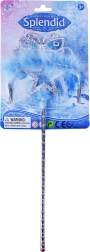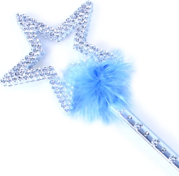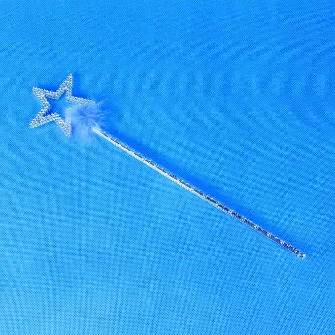Der Zauberstab hat ein Design mit einem Stern und blauen Steinchen, die seine magische Eleganz unterstreichen.