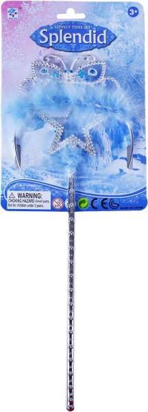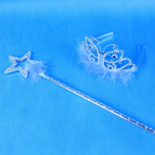 Dieses exklusive Set bietet alles, was eine kleine Prinzessin für ihr magisches Abenteuer braucht. Enthält ein wunderschönes silbernes Diadem mit blauen Steinchen und einen eleganten Zauberstab. Beide Elemente sind mit feinen blauen Federn verziert, die Schönheit und Zauber verleihen. Ideal für Prinzessinnen-Spiele, Kostümpartys und andere kreative Aktivitäten.