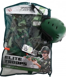Das Set enthält alles, was Sie für das militärische Spiel brauchen - Weste, Helm, Waffen und weiteres Zubehör.