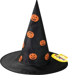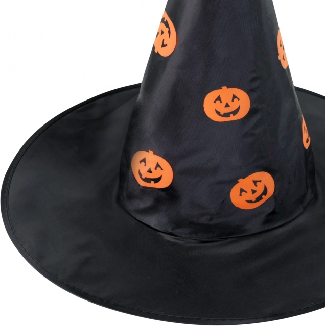 Schenken Sie Kindern ein unvergessliches Halloween-Erlebnis mit diesem schwarzen Hexenhut, verziert mit auffälligen orangefarbenen Kürbissen. Das leichte Textilmaterial sorgt den ganzen Tag für Komfort, und dank der klassischen spitzen Form entsteht sofort ein zauberhafter Effekt.