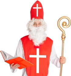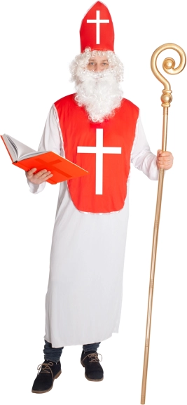 Die Kombination aus weißem Gewand und roter Brustpartie mit Kreuz sorgt für ein traditionelles und repräsentatives Erscheinungsbild bei jeder Nikolausbescherung.