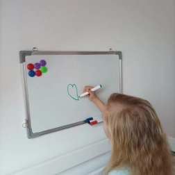 Die Nutzung dieser Tafel ist sehr vielseitig – von der Notierung wichtiger Informationen und der Erstellung von Diagrammen bis hin zu Bildungszwecken wie Mathematik oder Zeichnen. Dank der magnetischen Funktion können Sie wichtige Dokumente mit den zehn mitgelieferten farbigen Magneten an der Tafel befestigen.