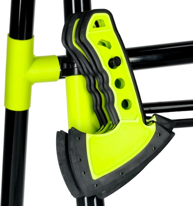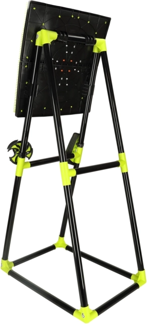 Die robuste Konstruktion mit grün‑schwarzen Verbindern steht eigenständig und hält dank Halterungen das Zubehör stets griffbereit.