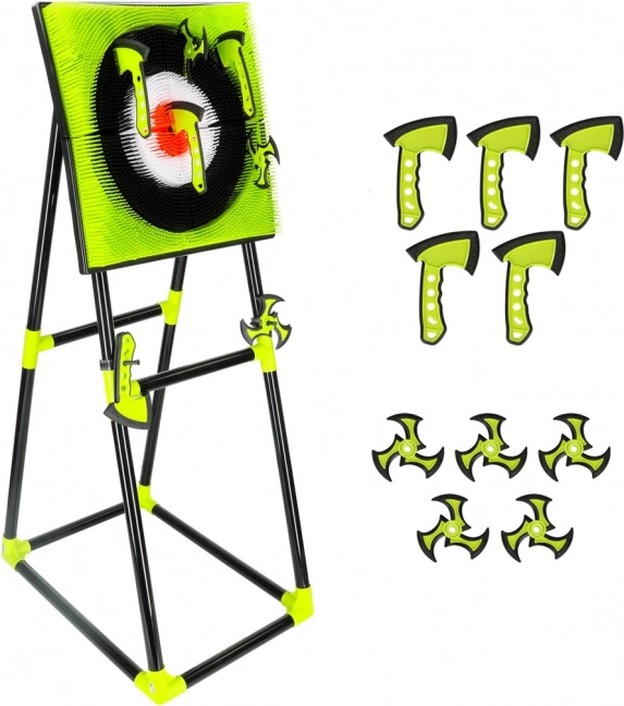 Entdecken Sie actiongeladenen Zielwurfsport im Ninja‑Stil – mit Silikon‑Äxten und Shuriken üben Kinder sicher Zielen und Konzentration. Der stabile freistehende Rahmen mit Ständer ermöglicht schnelles Aufbauen und bequemes Ablegen des Zubehörs.