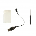 Die integrierten Licht- und Soundeffekte aktivieren Sie über die Fernsteuerung. Im Lieferumfang enthalten sind ein wiederaufladbarer Akku mit USB‑Kabel; die Fernsteuerung wird mit 2× AA betrieben (nicht enthalten).