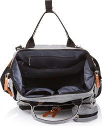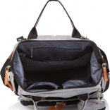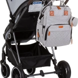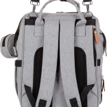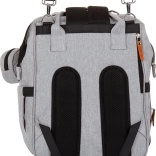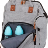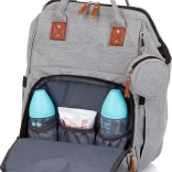 Der stylische Wickelrucksack in Grau vereint modernes Design mit maximaler Funktionalität. Dank zahlreicher Taschen, darunter drei innere Thermotaschen für Flaschen, finden Sie alles Wichtige – von Windeln bis zum Snack – im Handumdrehen. Der Rucksack lässt sich leicht am Kinderwagengriff befestigen und trägt sich dank der gepolsterten Gurte auch auf dem Rücken sehr komfortabel.