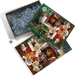 Puzzle- und Katzenliebhaber kommen hier voll auf ihre Kosten. Das Motiv voller Feststimmung wird durch einen originellen Zuschnitt ergänzt, der den Spaß und die Herausforderung beim Zusammensetzen erhöht. Durch die unregelmäßigen Formen liegen Ecken und Kanten nicht immer auf einer Achse, was ein längeres und befriedigenderes Puzzleerlebnis bietet.