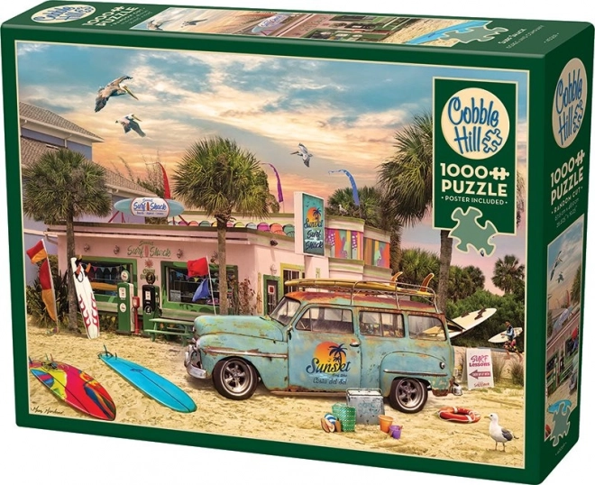 Erleben Sie eine einzigartige Puzzle-Herausforderung mit dem Puzzle Surferhütte von Cobble Hill. Es bietet eine komplexere Ausführung dank der asymmetrischen Formen der Teile, die nicht in einer Achse liegen. Dieser höhere Schwierigkeitsgrad garantiert, dass jedes Puzzeln ein unvergessliches Erlebnis wird.